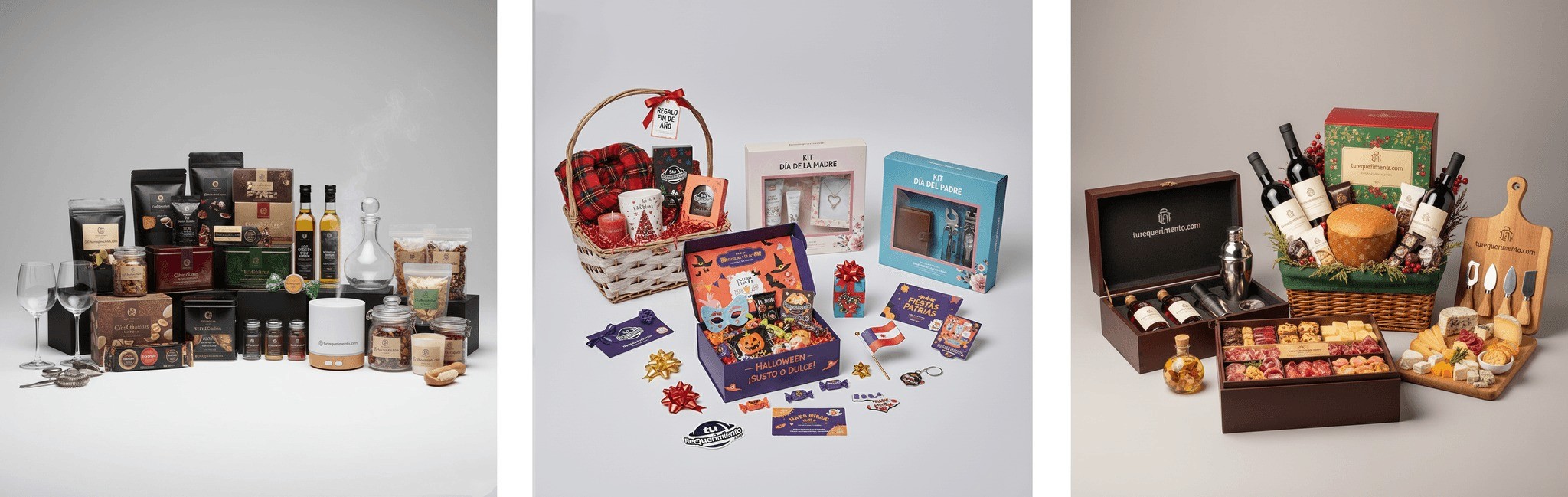 – Kits gourmet y navideños: Cestas con productos premium, licores especiales, chocolates artesanales y panettones.